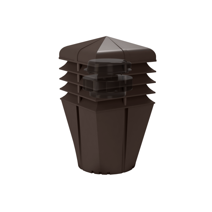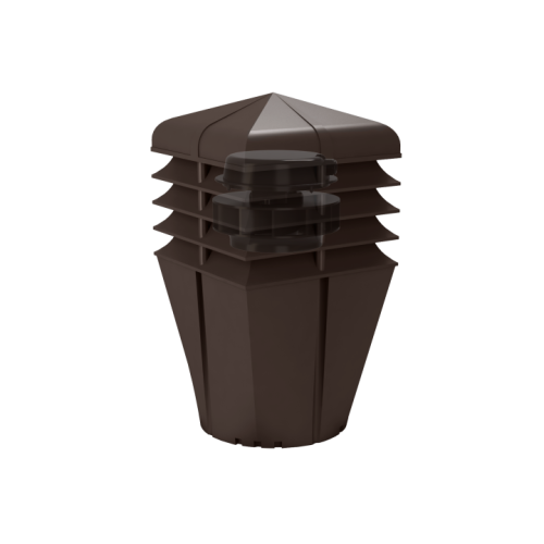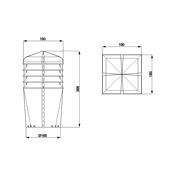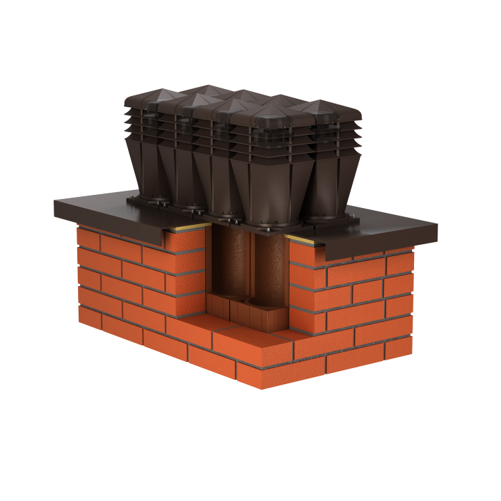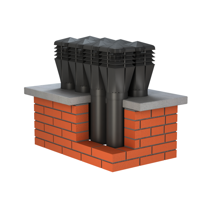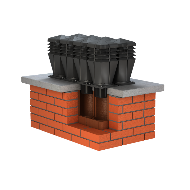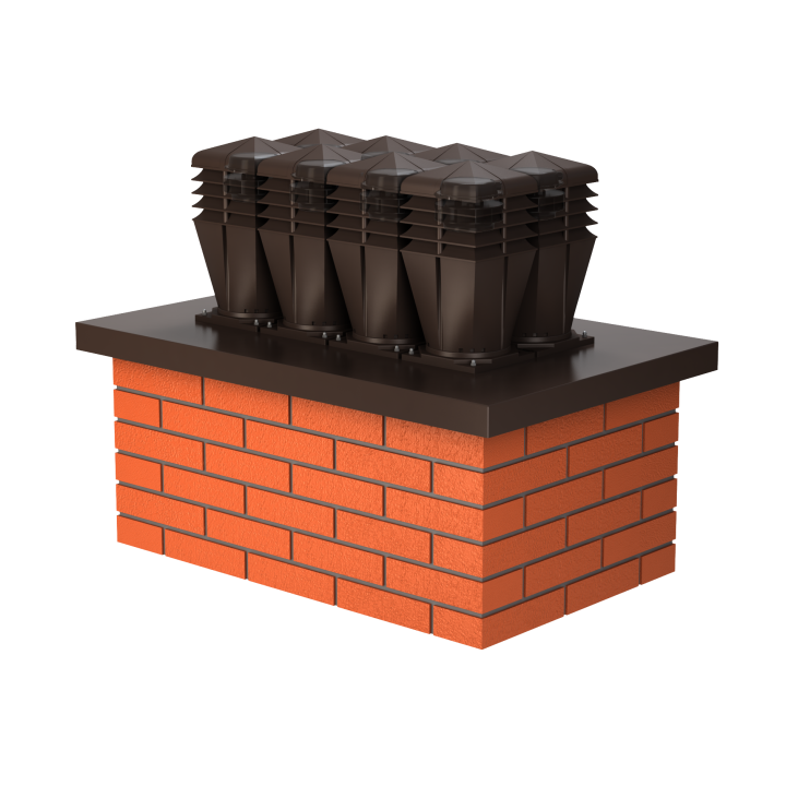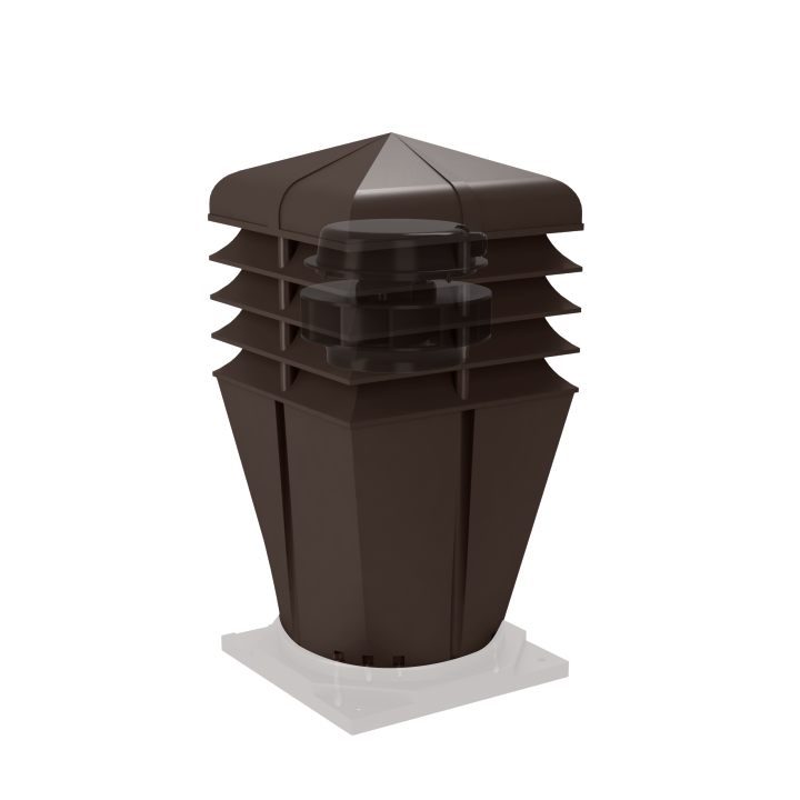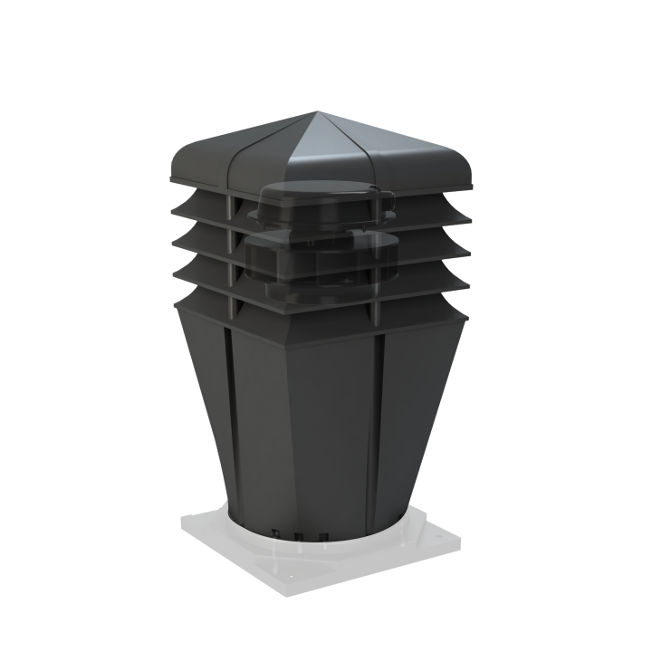 Nowo zaprojektowana nasada o bryle kwadratowej oraz zabudową pierścieniową została połączona z wirnikiem mechanicznym, przeznaczona do wymuszonego wyrzutu zużytego powietrza na zewnątrz, przystosowanym do pracy ciągłej. Dużą zaletą jest cichobieżny, a zarazem wysokowydajny wirnik elektryczny Typ: AC Standard+ renomowanej firmy EBM-PAPST Mulfingen GmbH & Co. Znakomite wyniki potwierdza wykres przepływu powietrza w tunelu aerodynamicznym. Dolna część nasady została niezmienna o przekroju Ø150. Dodatkowo wyposażona w 12 kanałów, które odprowadzają skropliny na pokrycie dachowe.