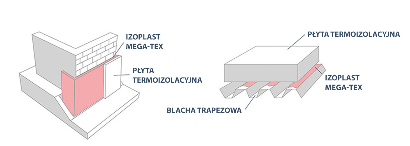 IZOPLAST MEGA-TEX przeznaczony jest do wyrównywania wgłębień, uszczelniania rys i pęknięć w pokryciach dachowych, uzupełniania ubytków w elementach z betonu, zapraw cementowych itp., wypełniania dylatacji do 5 mm (trwała i zawsze elastyczna spoina), wykonywania uszczelnień w obróbkach - opierzeniach blacharskich, uszczelniania kominów, łączeń rynnowych, nieszczelnych pokryć dachowych różnego rodzaju. Elastyczne łączenie materiałów budowlanych ze sobą (np. papa-papa, papa-styropian) lub z innymi elementami konstrukcyjnymi (np. metal, drewno, płyta falista).