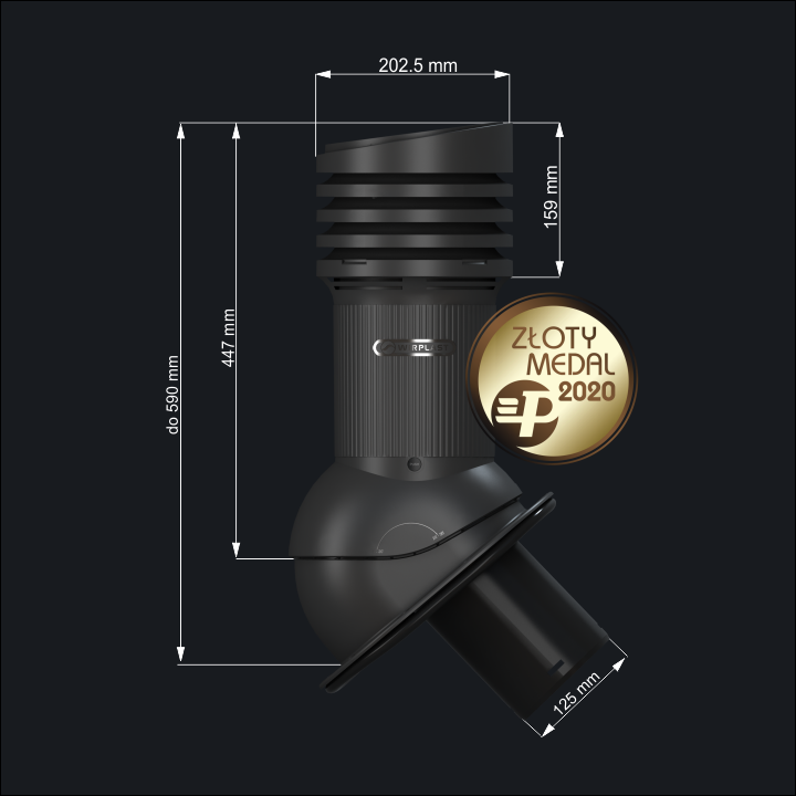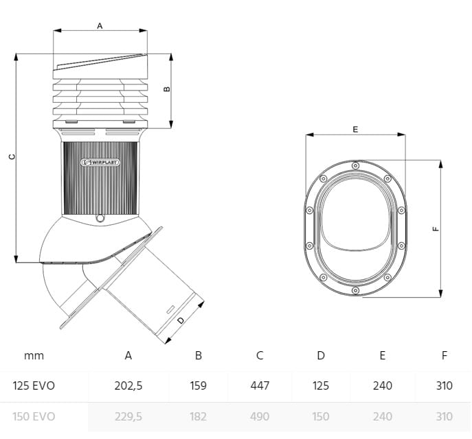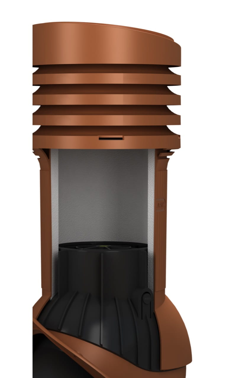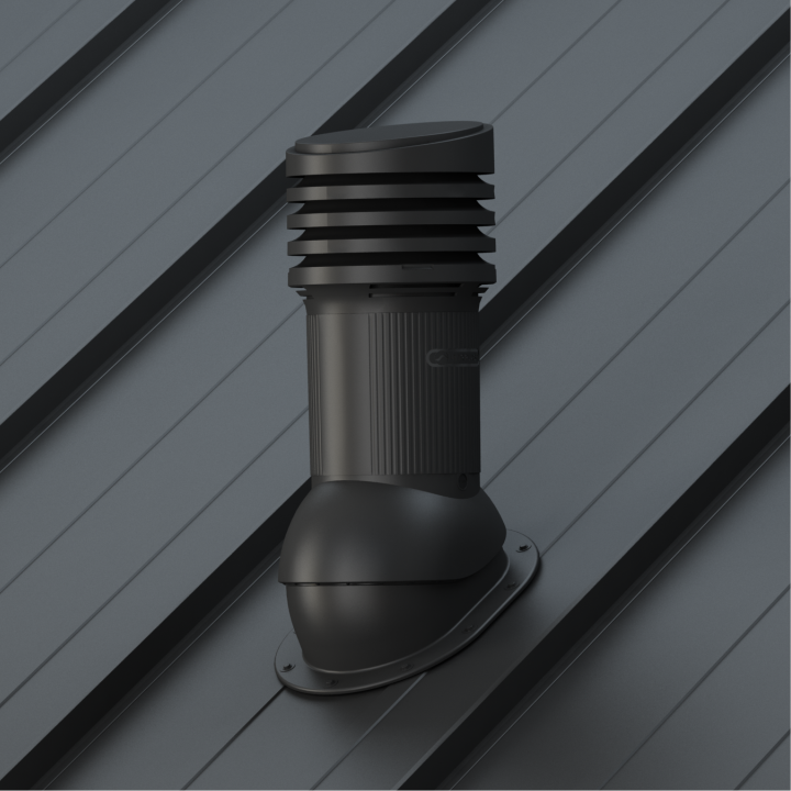NORMAL EVO 125 - Kompletny kominek wentylacyjny z profilowanym przejściem dachowym, montowany bezpośrednio na blachę płaską, gont lub papę. Wersja izolowana, która zapobiega kondensacji pary wodnej w przewodzie wentylacyjnym, najczęściej zauważalnej w okresie zimowym.