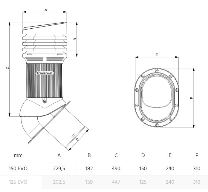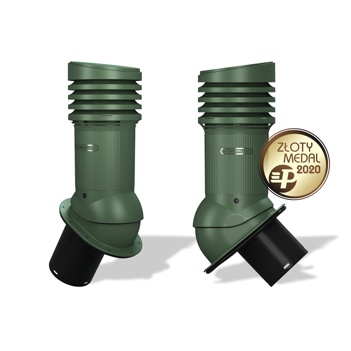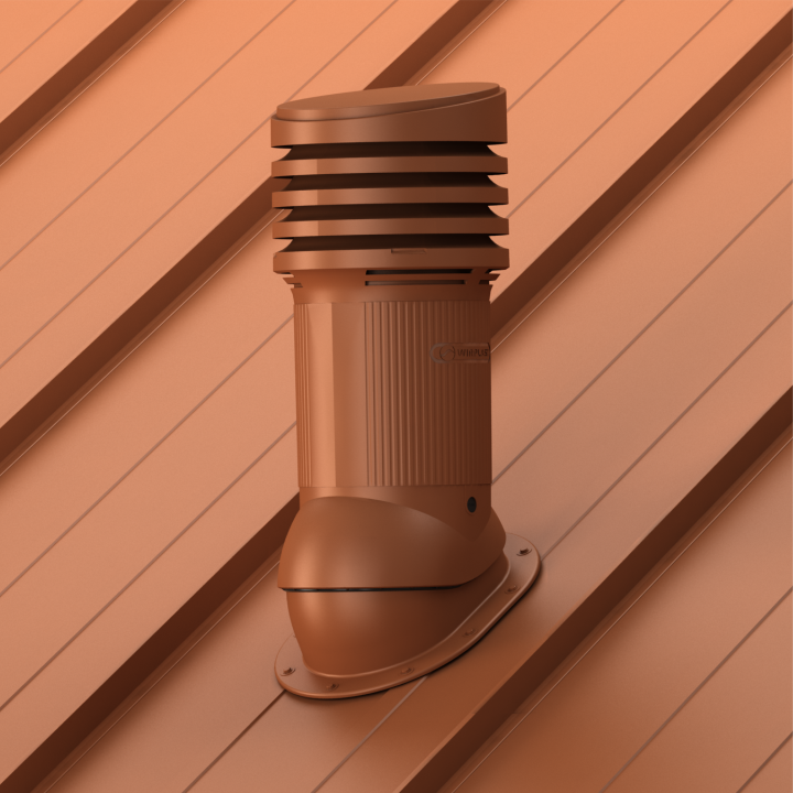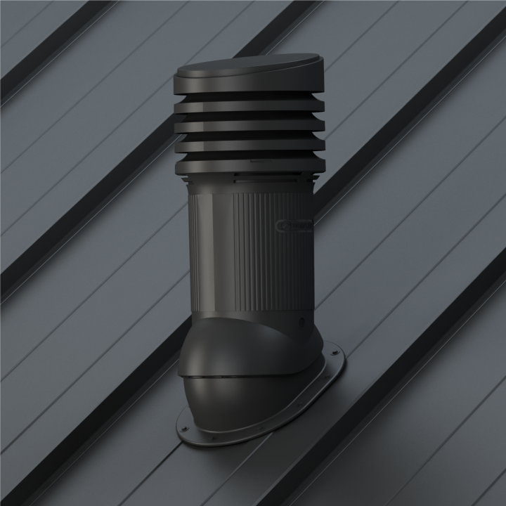 NORMAL EVO 150 - Kompletny kominek wentylacyjny z profilowanym przejściem dachowym, montowany bezpośrednio na blachę płaską, gont lub papę. Specjalne kanały odprowadzają skropliny (kondensat) na pokrycie dachowe.