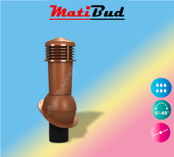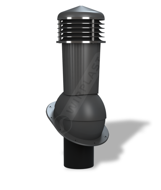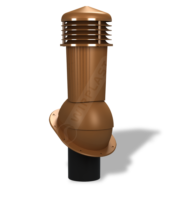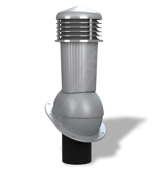 NORMAL PLUS DN 125 - Kompletny kominek wentylacyjny z profilowanym przejściem dachowym, montowany na blachach płaskich i trapezowych. Specjalne kanały odprowadzają skropliny (kondensat) na pokrycie dachowe.