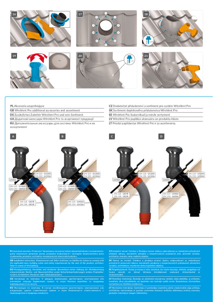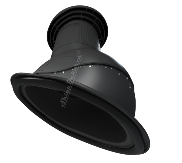 PERFEKTA PRO DN 125 - Kompletny kominek wentylacyjny z profilowanym przejściem dachowym, montowany bezpośrednio na blachodachówce. Specjalne kanały odprowadzają skropliny (kondensat) na pokrycie dachowe.