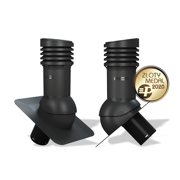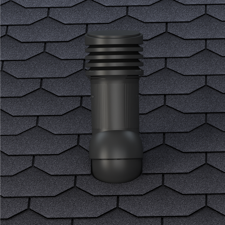 STANDARD EVO 125 - Kompletny kominek wentylacyjny z uniwersalnym przejściem dachowym, montowany bezpośrednio pod gont lub papę. Wersja izolowana, która zapobiega kondensacji pary wodnej w przewodzie wentylacyjnym, najczęściej zauważalnej w okresie zimowym.
