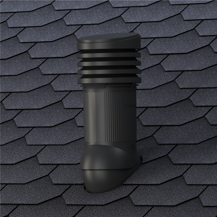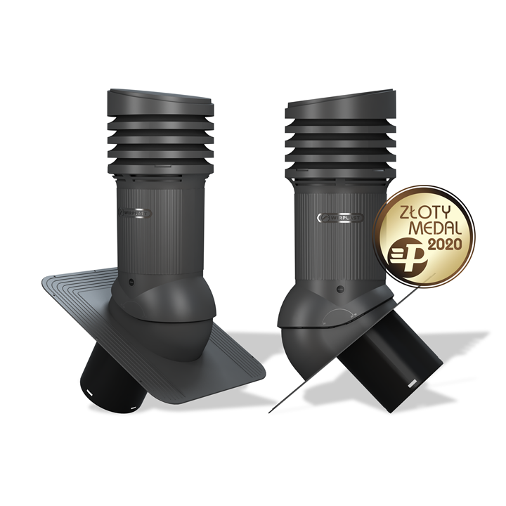 STANDARD EVO 150 - Kompletny kominek wentylacyjny z uniwersalnym przejściem dachowym, montowany bezpośrednio pod gont lub papę. Wersja izolowana, która zapobiega kondensacji pary wodnej w przewodzie wentylacyjnym, najczęściej zauważalnej w okresie zimowym.