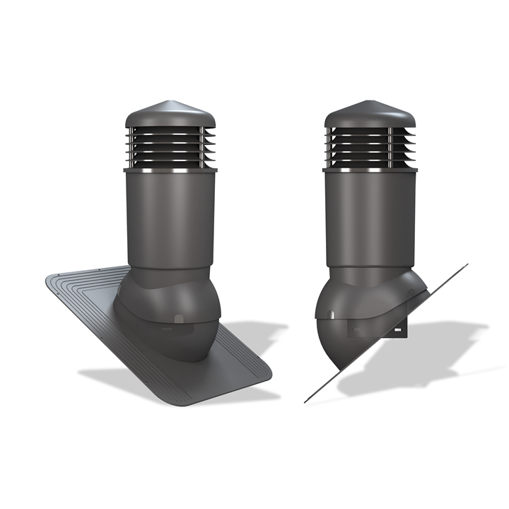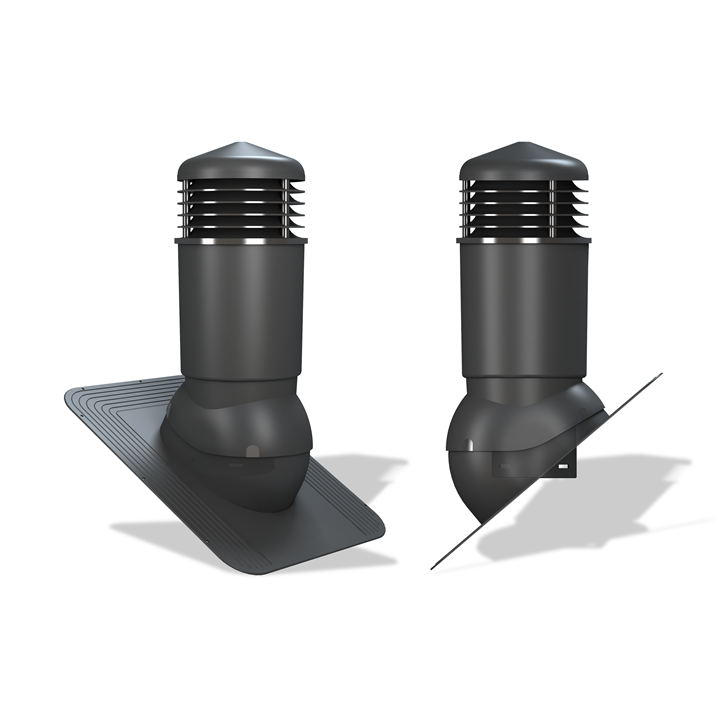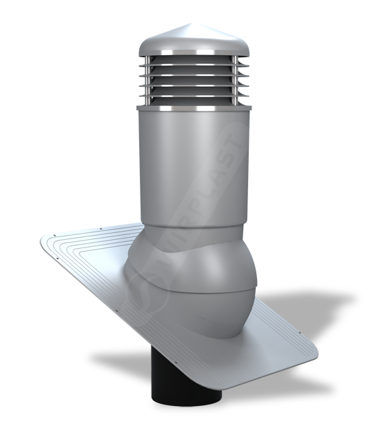 PERFEKTA PRO DN 125 - Kompletny kominek wentylacyjny z profilowanym przejściem dachowym, montowany pod gonty lub papę. Wersja izolowana, która zapobiega kondensacji pary wodnej w przewodzie wentylacyjnym, najczęściej zauważalnej w okresie zimowym.