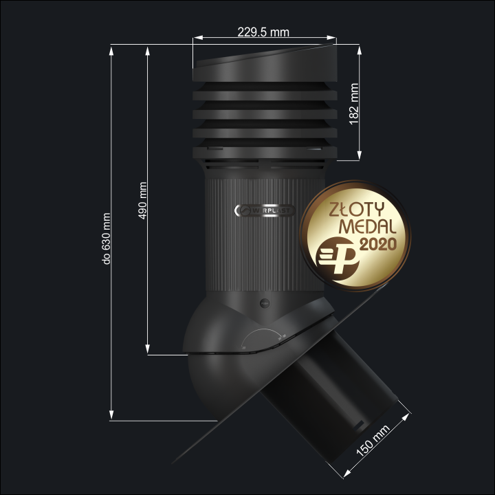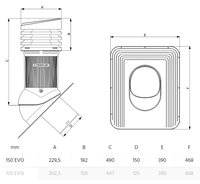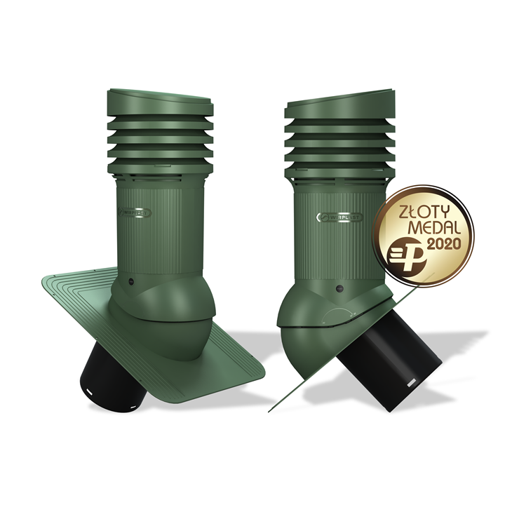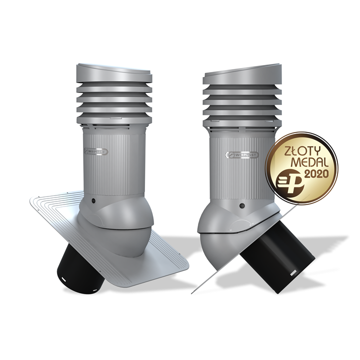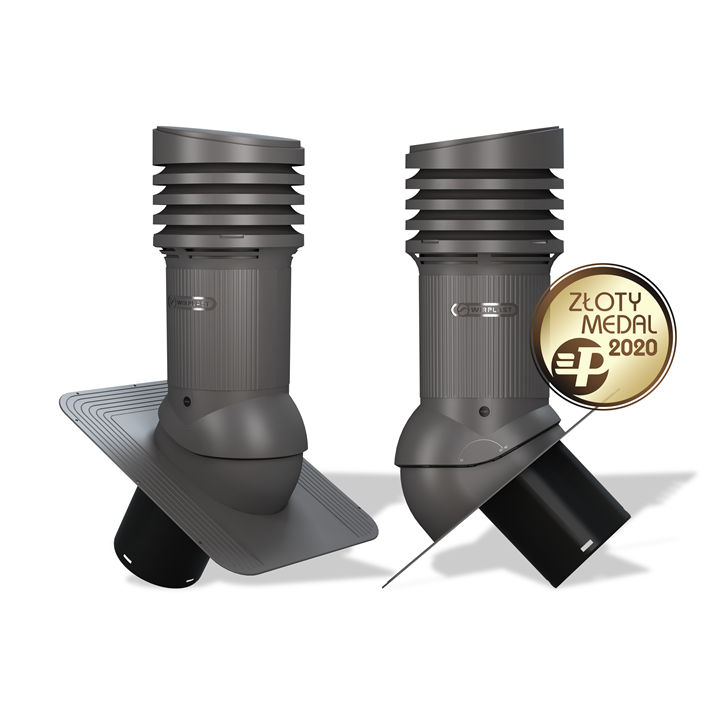 STANDARD EVO 150 - Kompletny kominek wentylacyjny z profilowanym przejściem dachowym, montowany pod gont lub papę. Specjalne kanały odprowadzają skropliny (kondensat) na pokrycie dachowe.