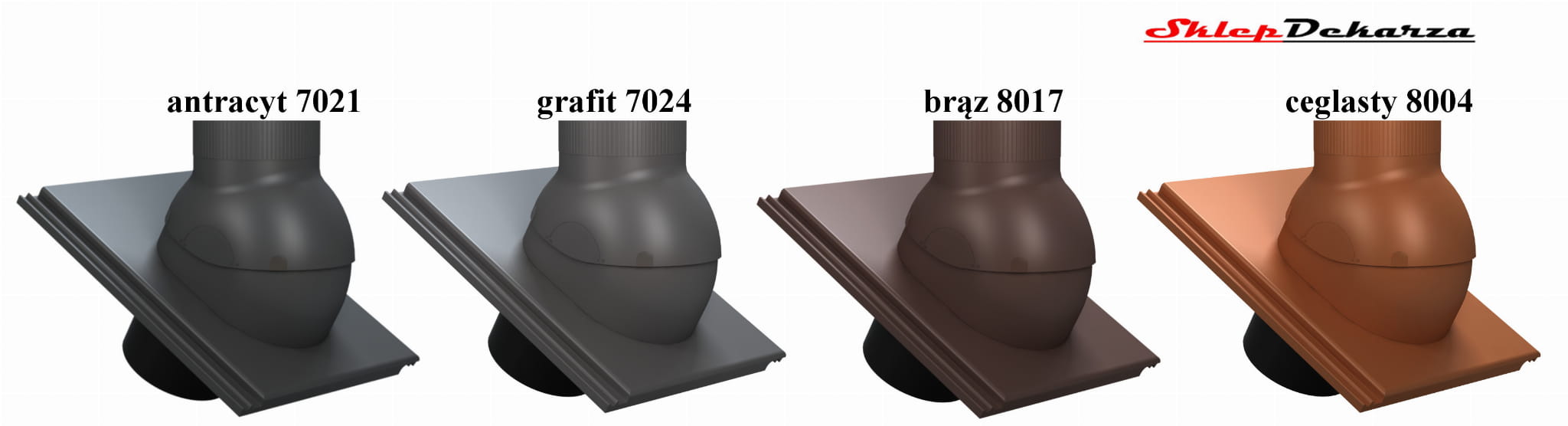 TILE PLUS DN 125 - Kompletny kominek wentylacyjny z profilowanym przejściem dachowym, montowany bezpośrednio na dachówce. Specjalne kanały odprowadzające skropliny (kondensat) na pokrycie dachowe.