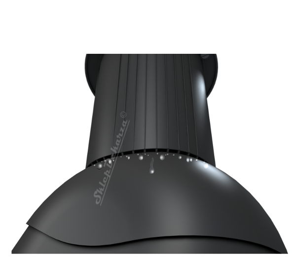 ODPŁYW KONDENSATU zabezpiecza przed przedostawaniem się skroplin pod pokrycie dachowe. W przypadku powstawania pary wodnej w górnej części kominka wentylacyjnego, kondensat nie skrapla się pod pokrycie dachowe (powodując w dłuższym okresie czasu powstawanie wilgoci, pleśni a nawet grzybów – wpływając niekorzystnie na strukturę budynku oraz jakość powietrza, tym samym negatywnie oddziałując na nasze zdrowie) lecz zostaje odprowadzony po ściankach kominka wentylacyjnego na pokrycie dachowe.