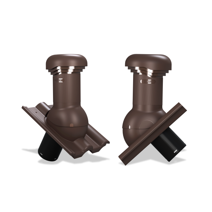 TILE PRO DN 125 - Kompletny kominek wentylacyjny z profilowanym przejściem dachowym, montowany bezpośrednio na dachówce. Specjalne kanały odprowadzające skropliny (kondensat) na pokrycie dachowe.