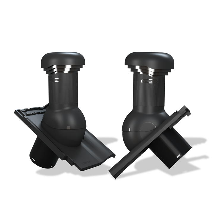 TILE PRO DN 150 - Kompletny kominek wentylacyjny z profilowanym przejściem dachowym, montowany bezpośrednio na dachówce. Specjalne kanały odprowadzające skropliny (kondensat) na pokrycie dachowe.