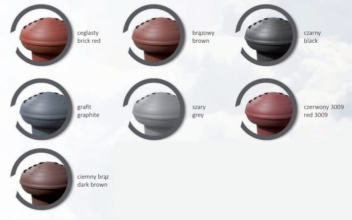 Kominek VIRTUM® dostępny w 9 popularnych kolorach. Paleta kolorów dostępna w galerii zdjęć.