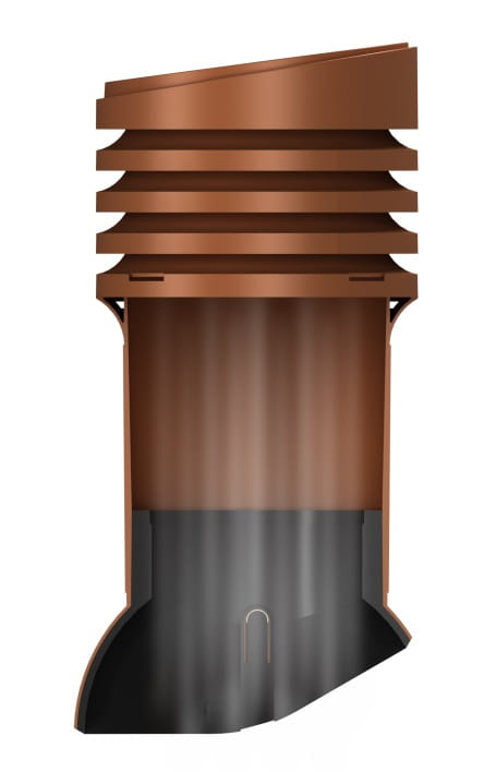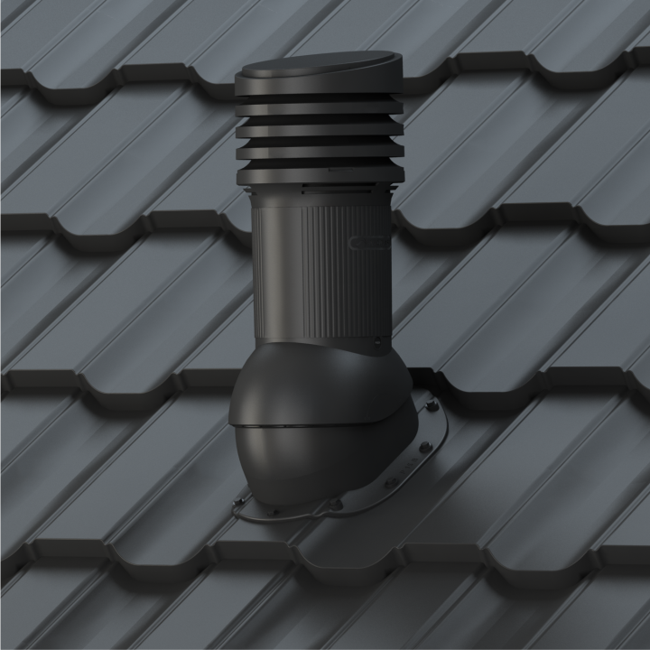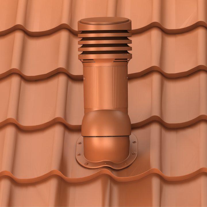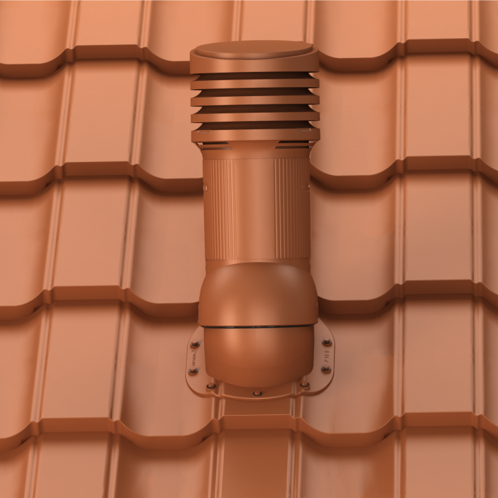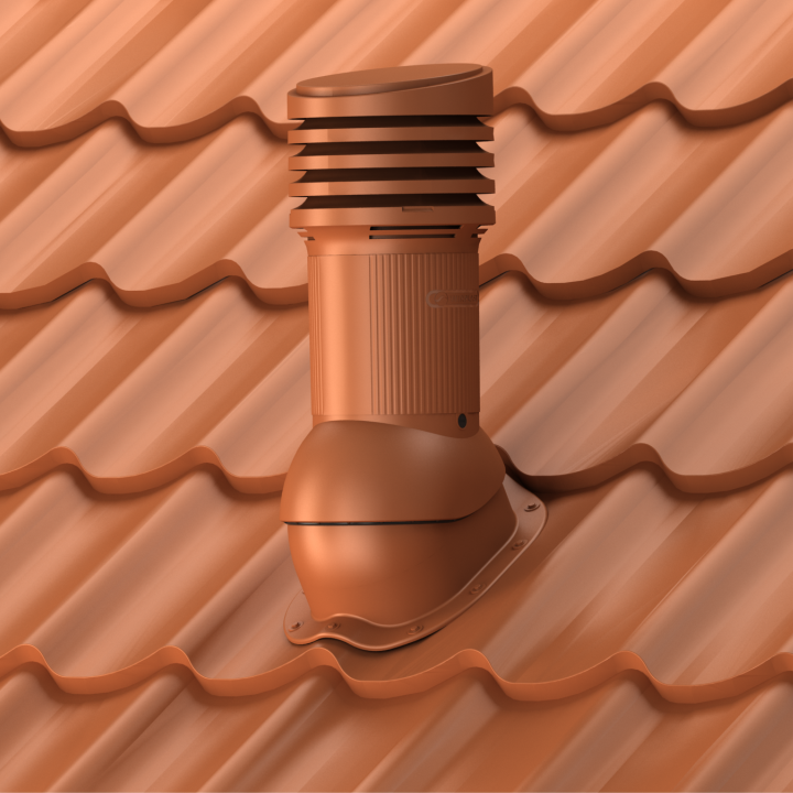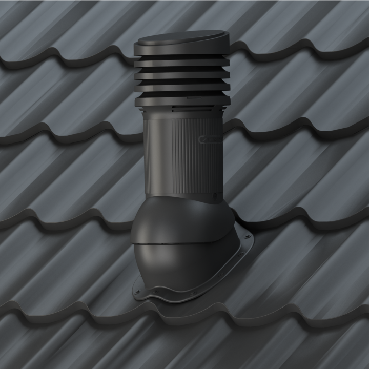 PERFEKTA EVO 125 - Kompletny kominek wentylacyjny z profilowanym przejściem dachowym, montowany bezpośrednio na blachodachówce. Wersja izolowana, która zapobiega kondensacji pary wodnej w przewodzie wentylacyjnym, najczęściej zauważalnej w okresie zimowym.