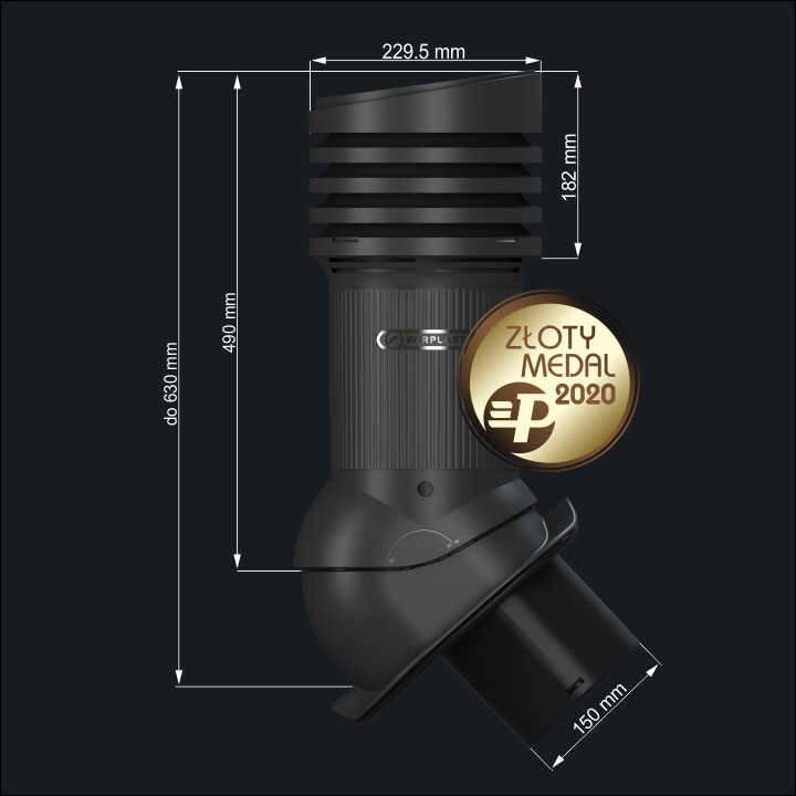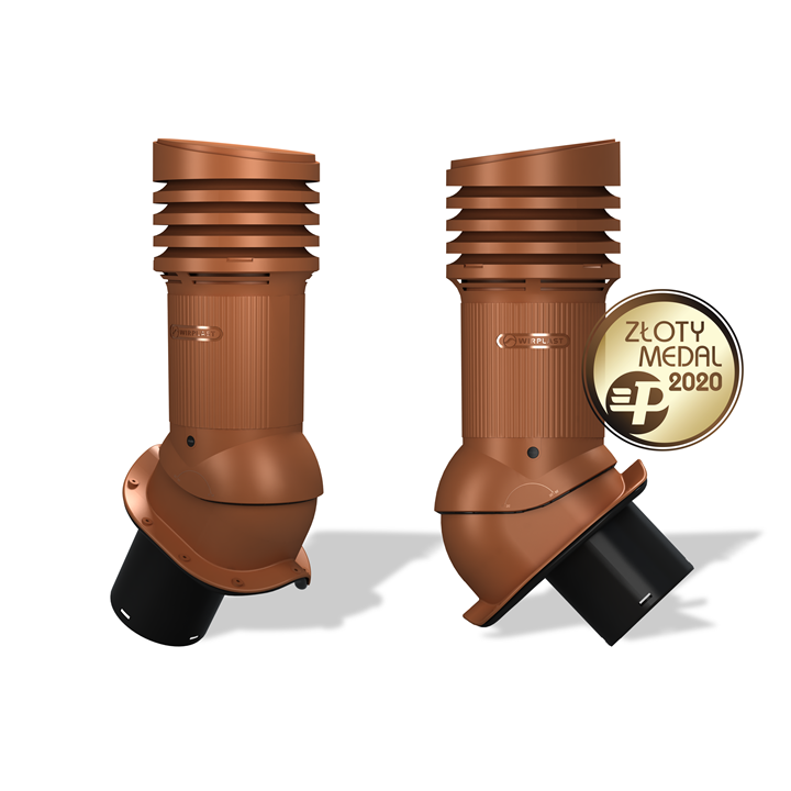 PERFEKTA EVO 150 - Kompletny kominek wentylacyjny z profilowanym przejściem dachowym, montowany bezpośrednio na blachodachówce. Specjalne kanały odprowadzają skropliny (kondensat) na pokrycie dachowe.