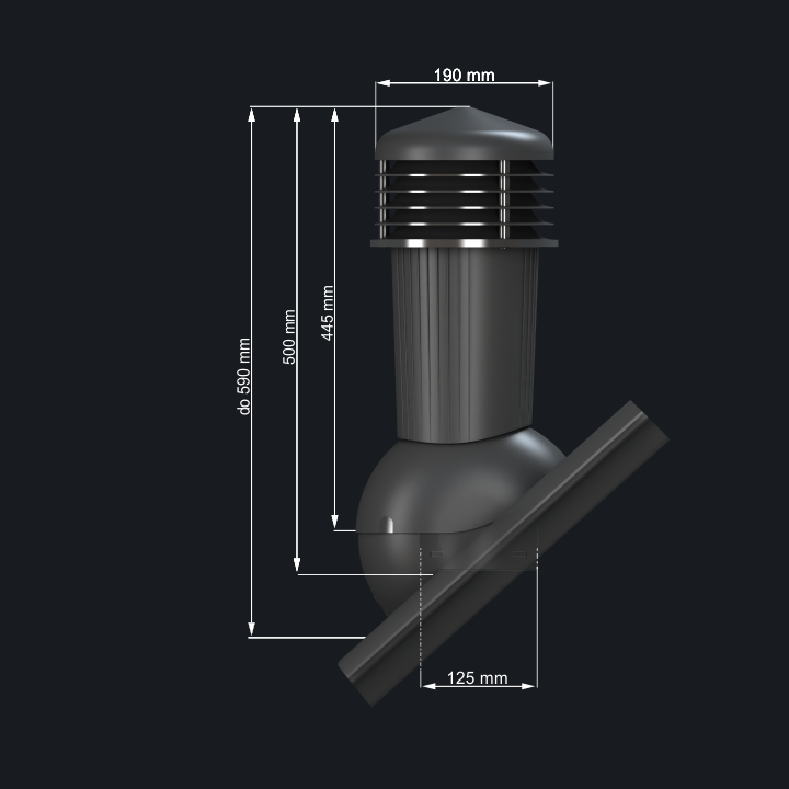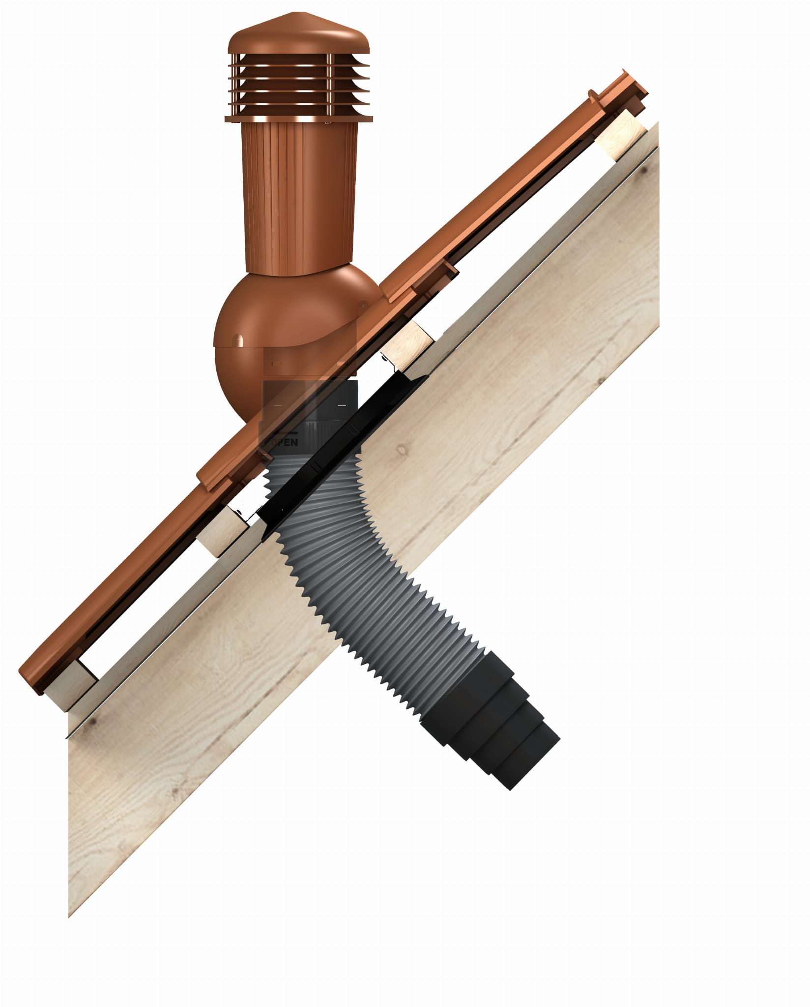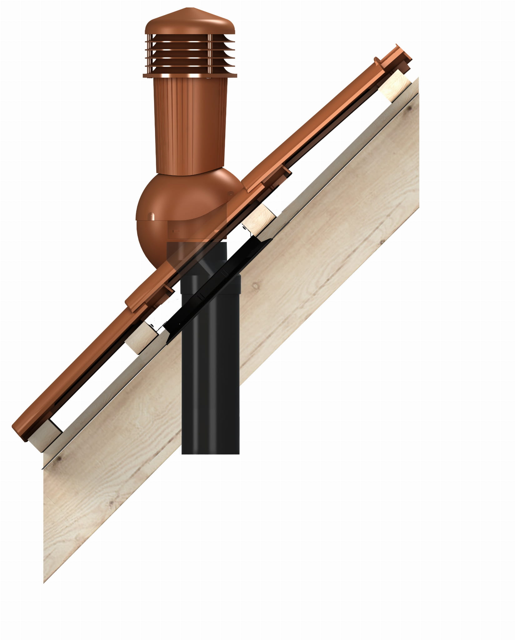 TILE PLUS DN 125 - Kompletny kominek wentylacyjny z profilowanym przejściem dachowym, montowany bezpośrednio na dachówce. Specjalne kanały odprowadzające skropliny (kondensat) na pokrycie dachowe.