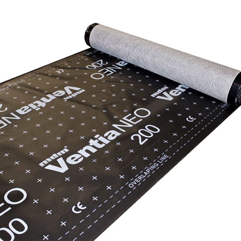 Dwuwarstwowa membrana dachowa VENTIA NEO 200 g/m² z warstwą termoplastycznego poliuretanu TPU. Dzięki zastosowaniu technologii laminowania klejem, włókna z tkaniny igłowanej są równomiernie wygładzone i nie ingerują w warstwę funkcyjną jak w przypadku technologii Hot Melt (wylewania na ciepło warstwy TPU).