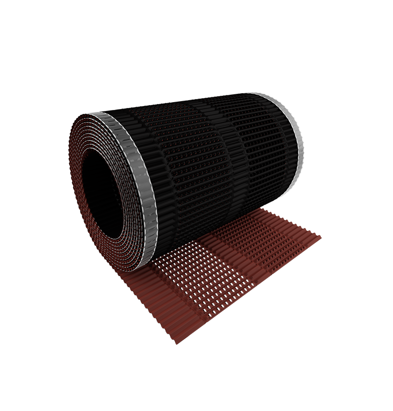 Aluminiowa taśma kalenicowa z mikrootworami wentylującymi obszar kalenicy, może być stosowana do większości typów pokryć dachowych. Zabezpiecza przed wnikaniem wody, pyłu i kurzu pod pokrycie dachowe. Wymiary 300mmx5mb