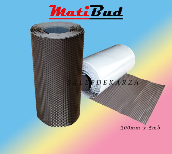 Samoprzylepna taśma kominowa na bazie profilowanego aluminium przeznaczona do obróbki komina, okien dachowych i wykuszu. Produkt stanowi nieodzowny element systemu hydroizolacyjnego dachu, tworząc barierę dla wody z opadów atmosferycznych. 300mmx5mb