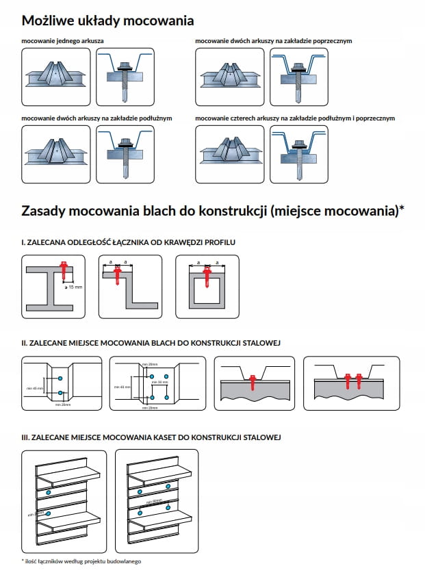 Przeznaczone do mocowania cienkich blach stalowych o profilu dachowym do konstrukcji drewnianej. Zabezpieczone powłoką malarską – poliestrową o grubości nie mniejszej niż 50 μm, przeznaczone do zastosowania w środowiskach o kategorii korozyjności atmosfery C1, C2 i C3.