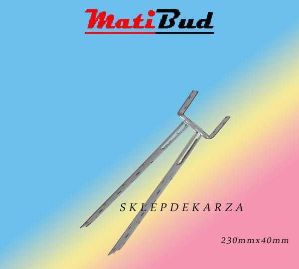 Wspornik łaty kalenicowej typu blacha. Umożliwia łatwe, stabilne i szybkie ustalenie odpowiedniej wysokości oraz wypoziomowanie łaty kalenicowej. Dzięki zastosowaniu wspornika, mocowanie gąsiora jest trwałe i pewne.