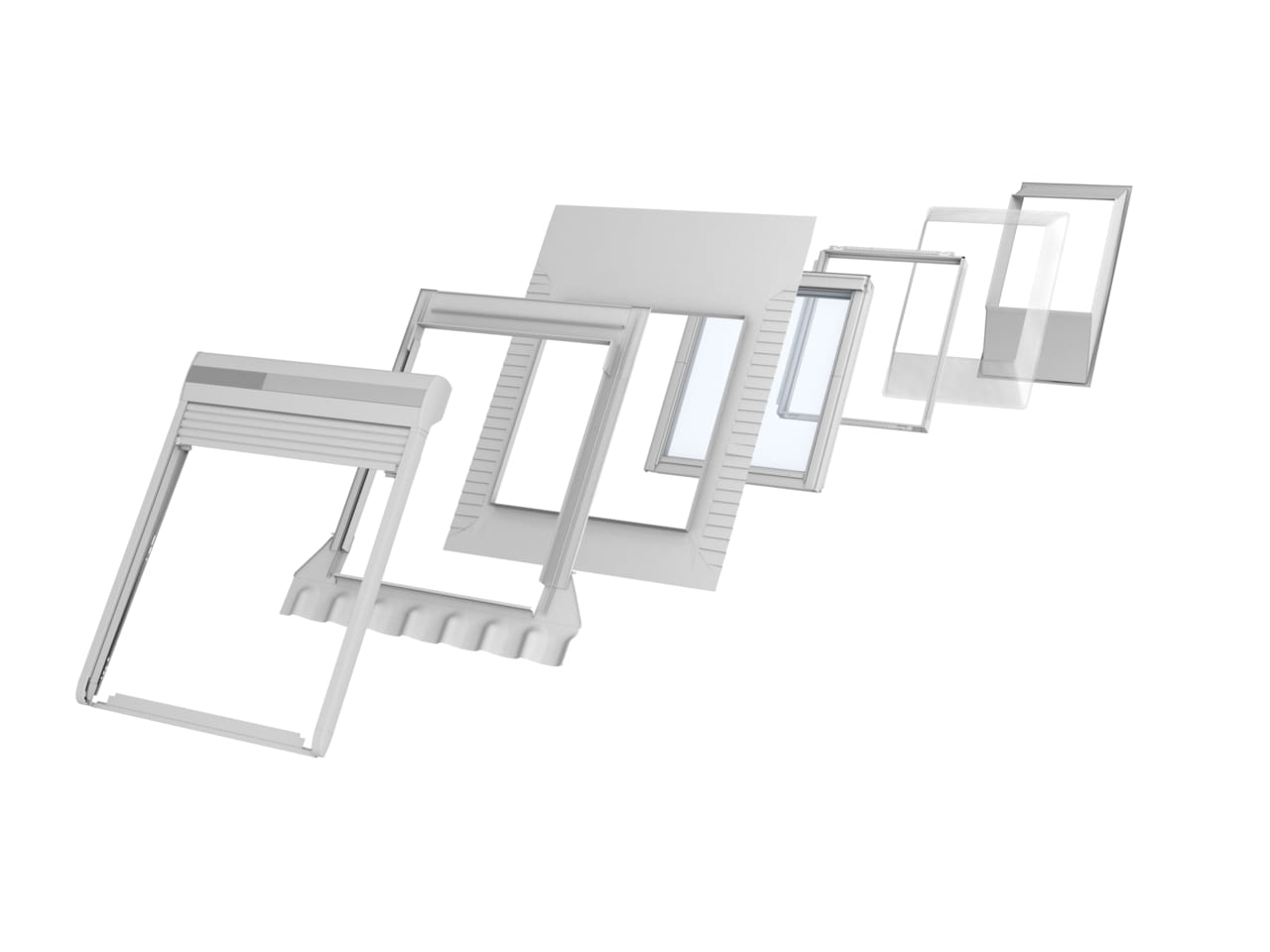Zestaw zawiera ramę izolacyjną oraz włókienną izolację przeciwwilgociową BFX. Dzięki rynience odwadniającej wilgoć powstająca pod pokryciem dachowym odprowadzana jest poza obrys okna.